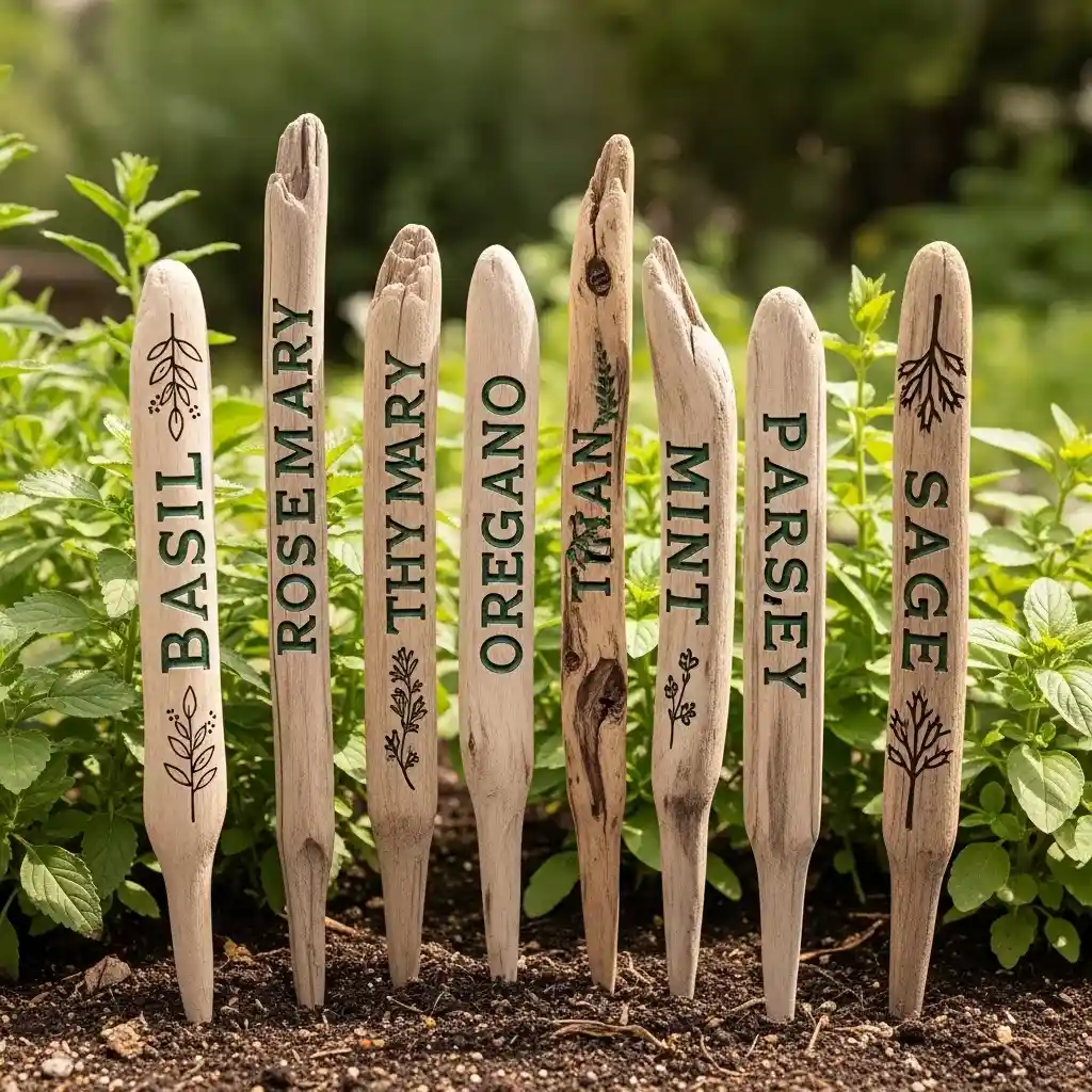 Crafting a matching set of driftwood herb garden markers adds a beautifully handmade, artisan quality to kitchen herb gardens and ornamental herb borders alike, combining practical function with genuine natural charm and personality.