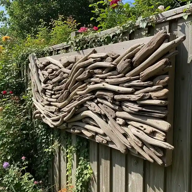 Creating a driftwood art installation along a garden fence line transforms a plain boundary into a genuinely spectacular outdoor gallery that adds layers of natural texture, artistic interest, and real personality to your entire garden space.