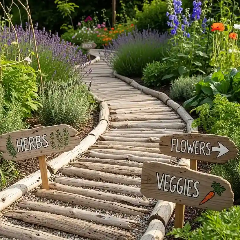 Painting or carving plant names and garden directions onto flat driftwood pieces creates charming, personalised pathway markers that add a handcrafted, cottage-garden feel to any outdoor space while serving a genuinely practical purpose too.