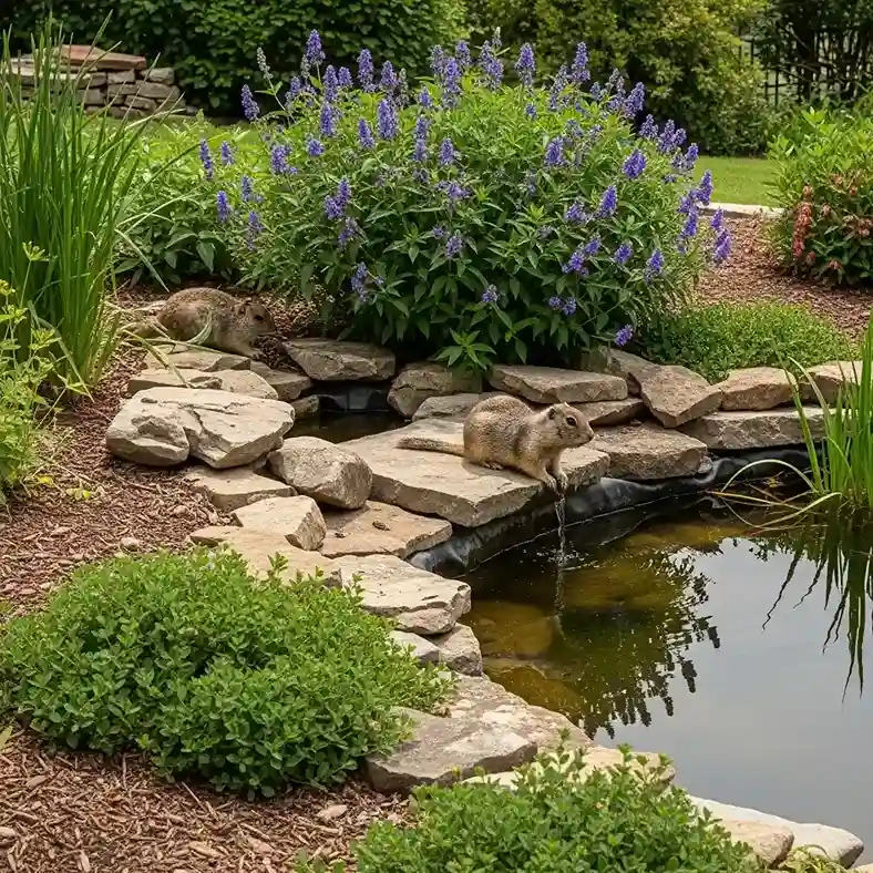 During hot summers, ground squirrels are often drawn to water plants guide species and pond edges for a drink. Making your water features less accessible can reduce their presence.