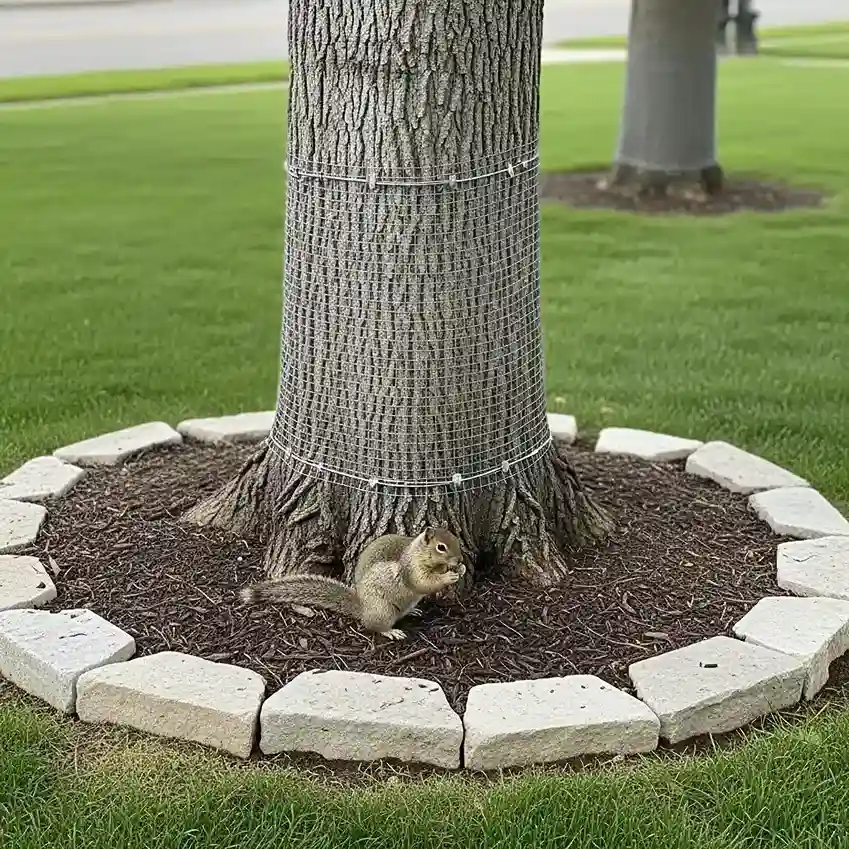If your yard features mature trees, you must protect the “trunk flare” and surface roots from being gnawed. This is a crucial element of tree landscaping ideas in squirrel-heavy regions.