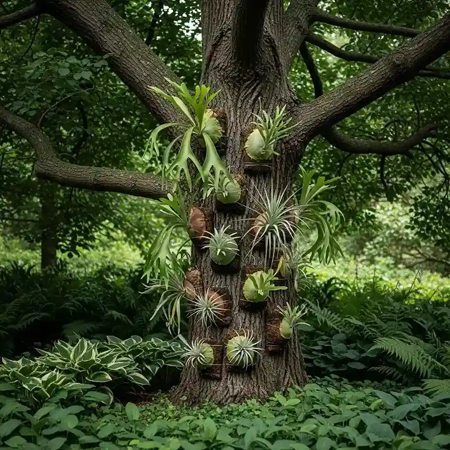 If you have large trees, their trunks are natural vertical real estate. Use tree landscaping ideas to mount staghorn ferns or air plants directly onto the bark.