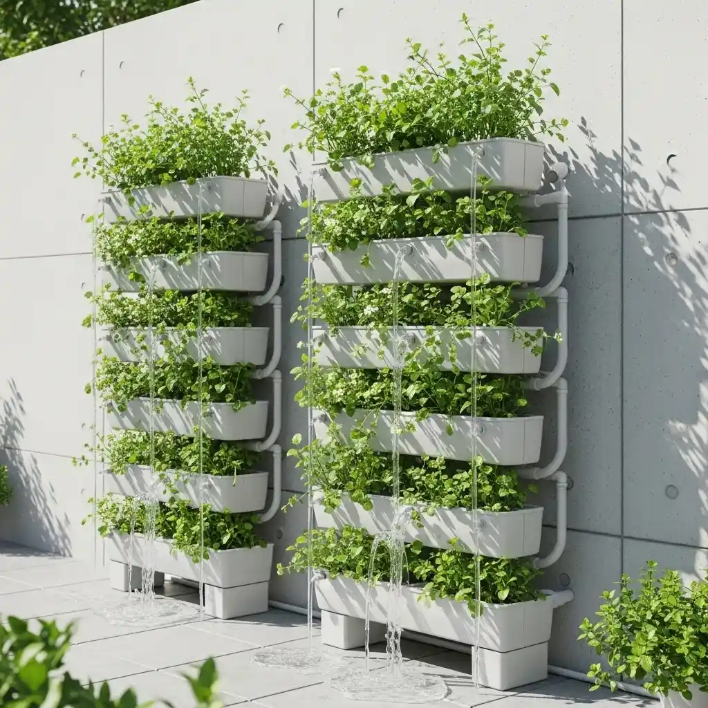 - Brightness: The white stone reflects light up into the lower leaves of the vertical garden.