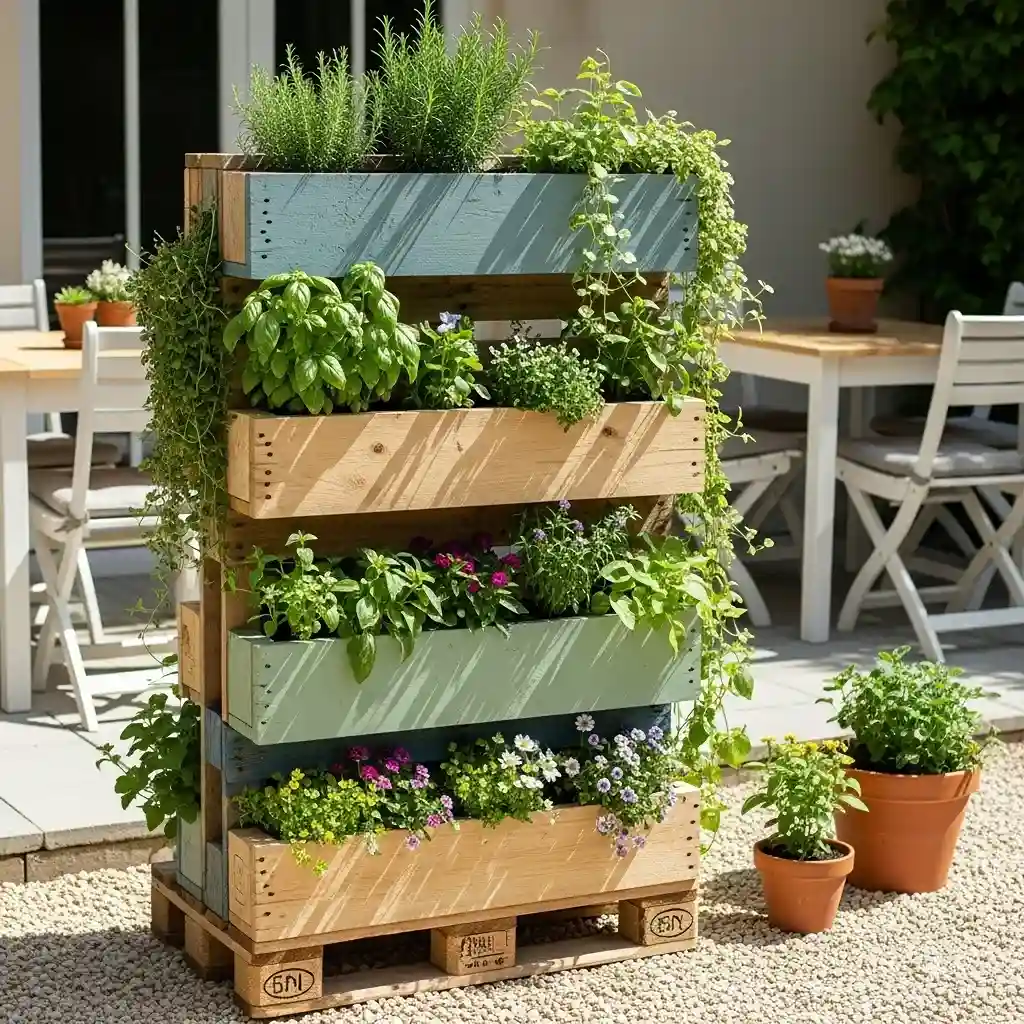 If you’re on a budget, you don’t need expensive modular systems. Using cheap landscaping ideas like upcycled wooden pallets is an eco-friendly way to go vertical.