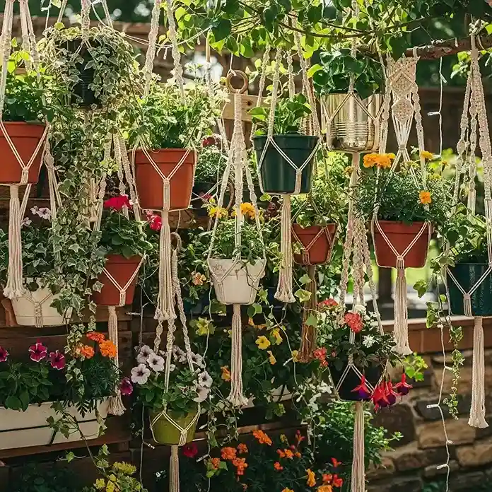 Vertical gardens are the backbone of the hippie garden bohemian outdoor aesthetic. Think macramé hangers and mismatched pots overflowing with trailing ivy and colorful blooms.
