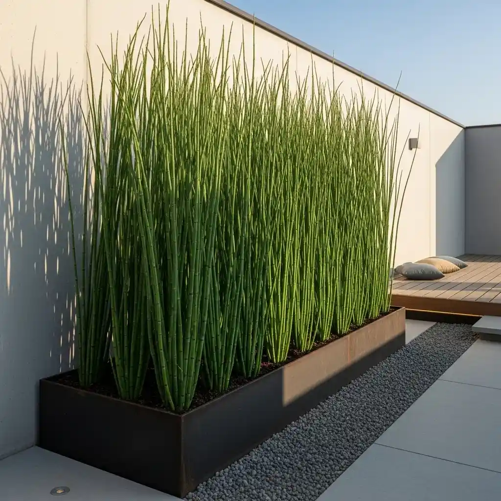 Horsetail is a “living fossil” that grows in stiff, bamboo-like stalks. It is perfect for modern, minimalist trending landscaping ideas.