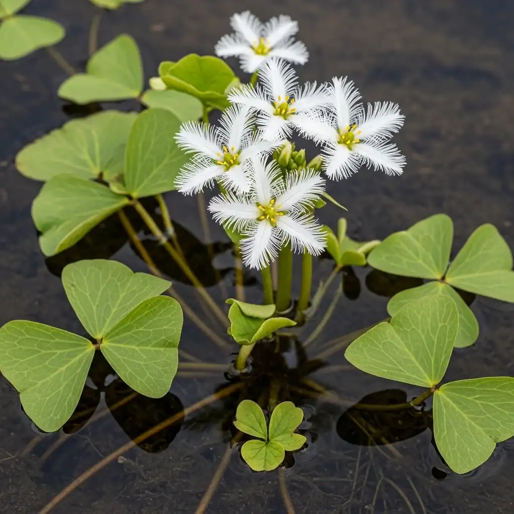 This unique plant grows in very shallow water and produces fringed, white, star-shaped flowers. It’s a rare gem that adds a “collector’s” touch to your pond.