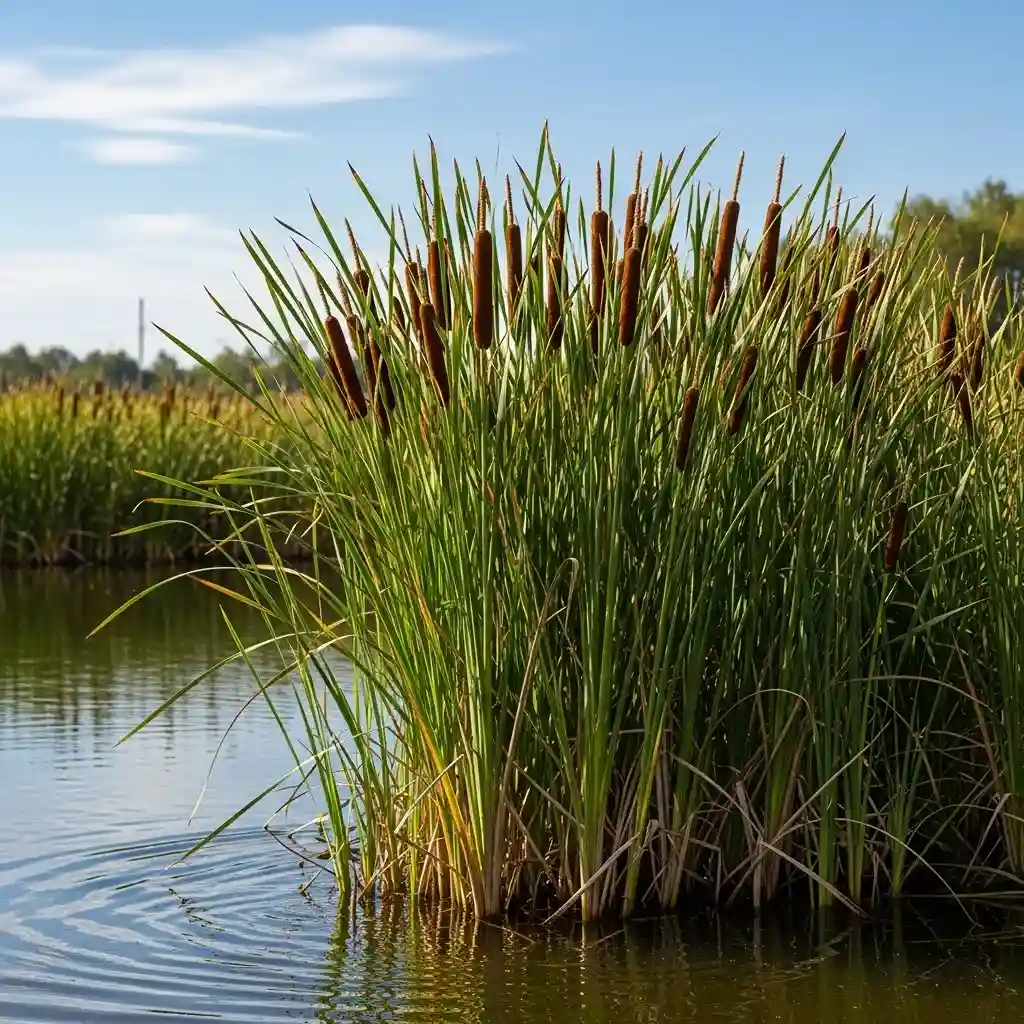 Cattails (Typha) provide a rugged, wild aesthetic. They are excellent for larger ponds where you want to create a natural-looking boundary.
